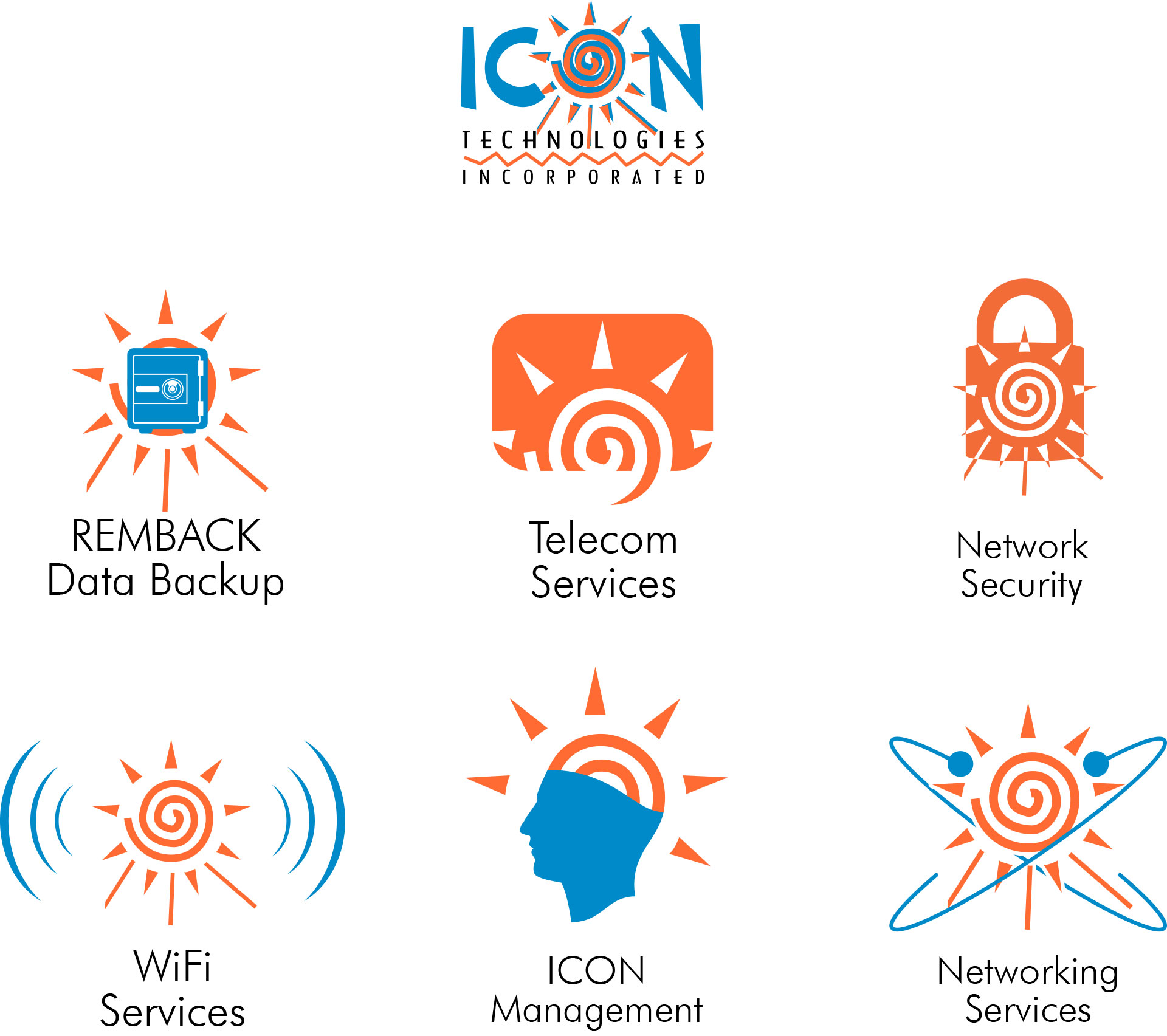 These logos were designed for ICON Technologies, providing a unique mark for the various services offered by the company while maintaining a visual connection with their company logo.